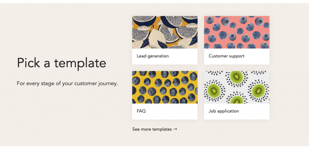 アンケートやクイズを作成したり、採用プロセスの認証を自動化したり、FAQボットを作成して問い合わせに対する自動回答を提供したり、ウェブサイトを訪れた人の連絡先を収集したりするのに最適です。