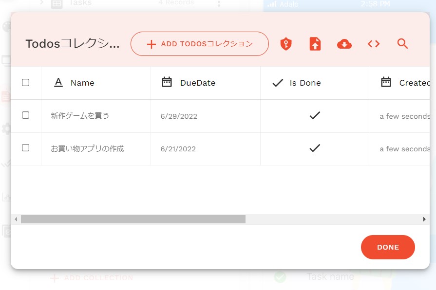 先ほど作ったデータが反映されていますね。プログラミングのコードを活用しなくても、ここまで簡単にアプリを作ることができるのが、Adaloです。
